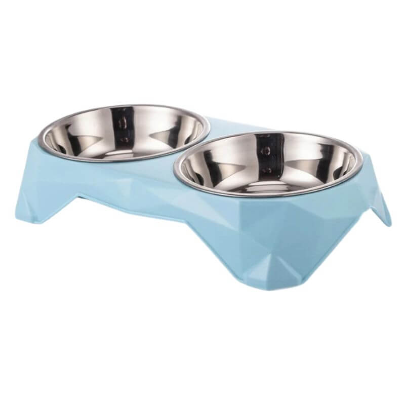 Wonder Pet Plato de Acero Inoxidable Diseño Corazon, Medida 18×6 cm, Color Azul