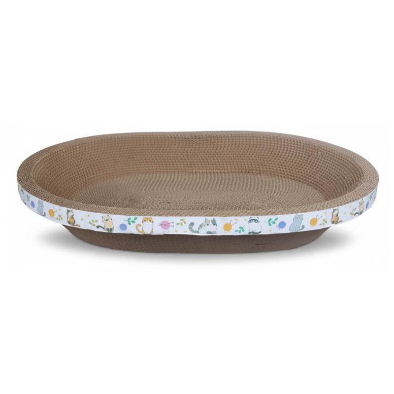 Guau! Rascador de Cartón para Gatos Ovalado, Con Catnip, Café con Diseños