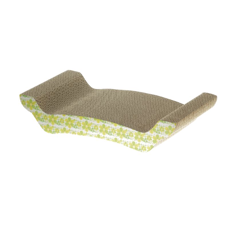 Marben Pets Rascador Trono con Diseño de Flores para Gatos, Cartón Corrugado con Catnip, Color Verde, Medidas 42x21x4 cm