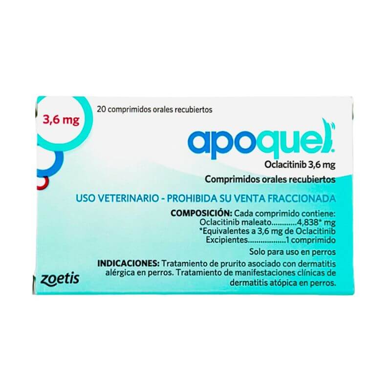 Apoquel (oclacitinib), Control Alergias, Picazón e Inflamación de Piel para Perros, 3.6 mg, 20 comprimidos