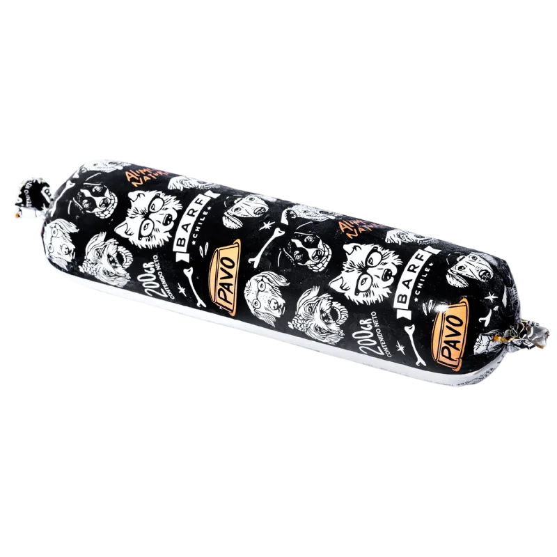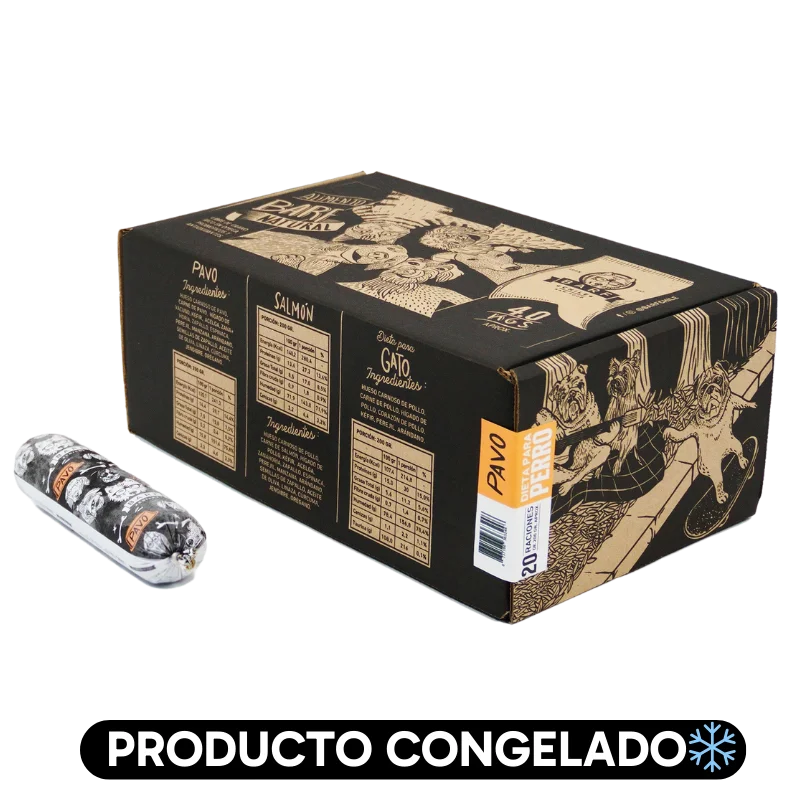 Barf Alimento Húmedo Natural Completo para Perros, Pavo, Caja 4 kg, 20 unidades de 200 gr, en sachet