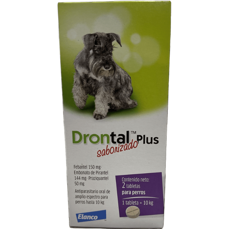 Drontal Plus, Antiparasitario Interno para Perros, hasta 10 kg, 2 comprimidos masticables, 1 comprimido=10 kg (dosis mensuales)