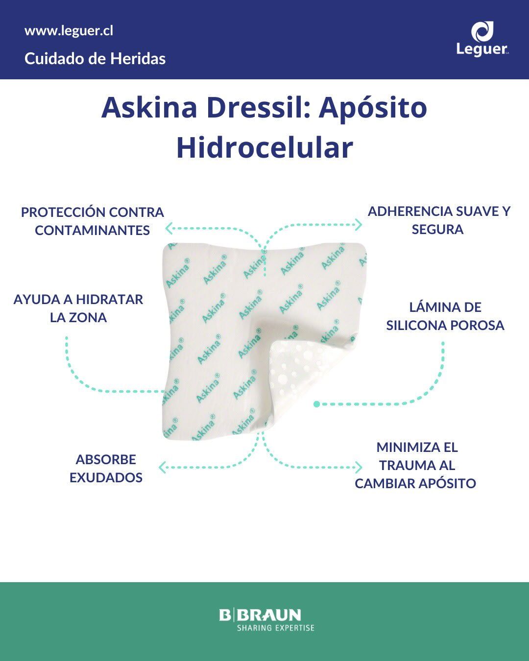 Su capa externa de film de poliuretano actúa como barrera frente a líquidos y contaminantes, mientras permite el intercambio de gases, favoreciendo el proceso natural de cicatrización. Es altamente eficaz en el manejo de lesiones con exudado moderado, brindando protección y confort al paciente.