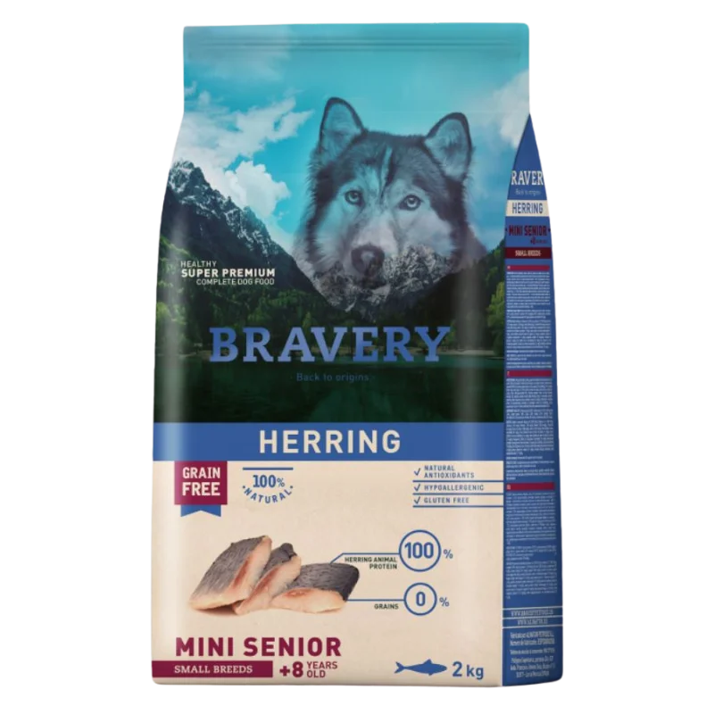 Bravery Herring Alimento Seco para Perros, Senior, Raza Mini/Pequeña, Arenque (Pescado Blanco), bolsa de 2-7 kg