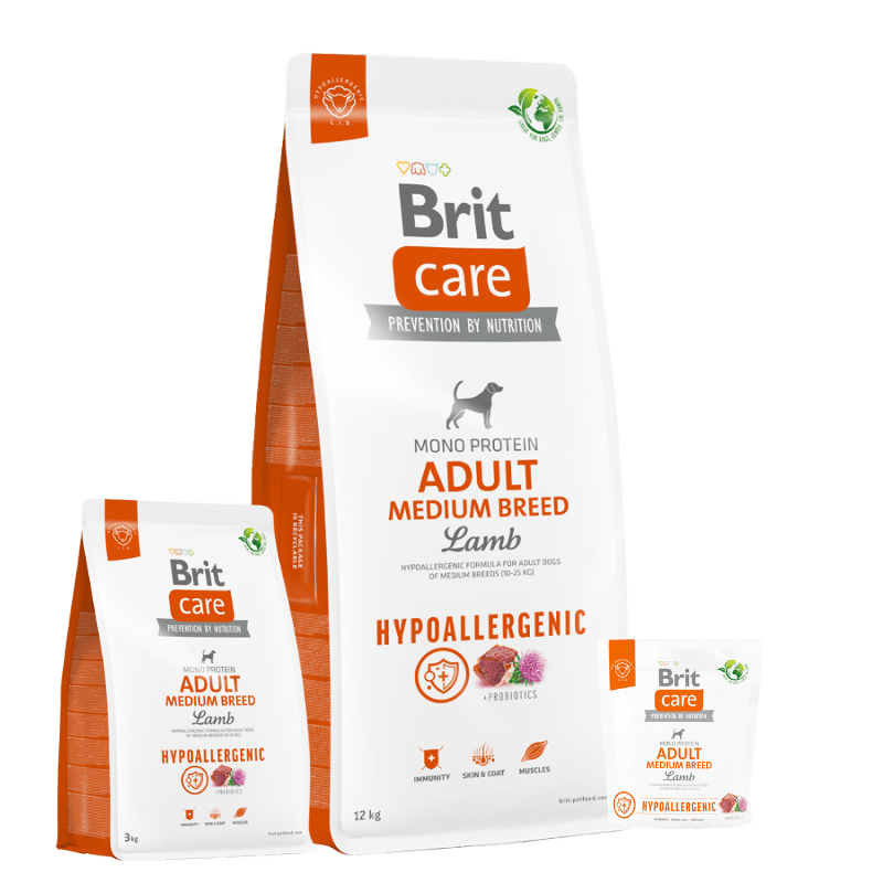 Brit Care Alimento Seco para Perros Hipoalergénico, Adulto, Raza Mediana, Cordero, bolsa de 1-3-12 kg