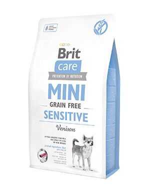 Brit Care Mini Grain Free Sensitive, Alimento Seco para Perros, Estómago Delicado, Raza Mini/Pequeña, Venado Libre de Granos, bolsa de 2-7 kg