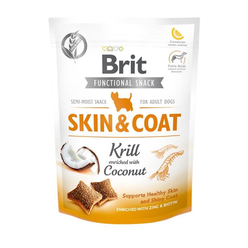 BRIT FUNCTIONAL SNACK SKIN & COAT – KRILL CON COCO PARA PERROS ADULTOS (150 g)
