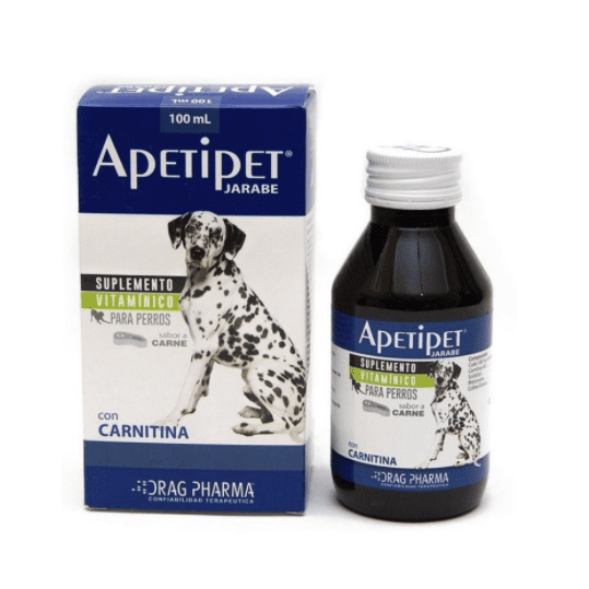 Suplemento vitamínico para perros. Apetipet es un suplemento a base de Carnitina, complementada con aminoácidos, vitaminas y Calcio. Su fórmula aumenta las ganas de comer de su mascota. Para perros.