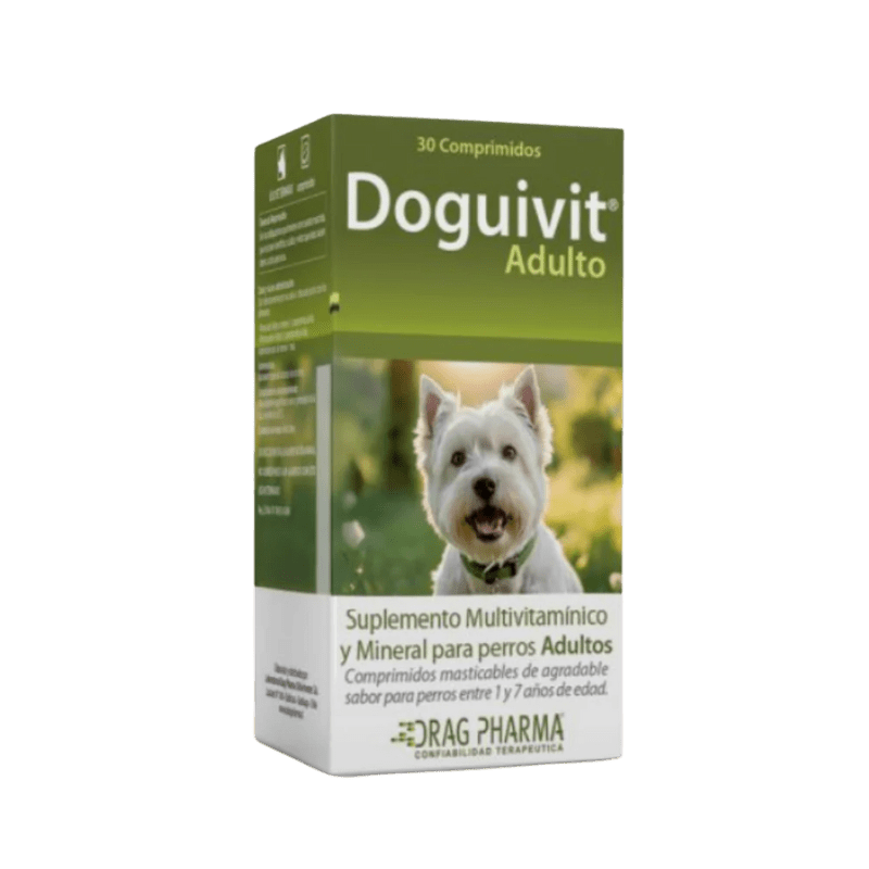 Doguivit Adulto es un suplemento nutricional desarrollado para cubrir las necesidades de vitaminas y minerales en perros adultos. Es ideal para aquellos que atraviesan fases de crecimiento, preñez, lactancia, periodos de estrés o recuperación de enfermedades. Su fórmula completa y balanceada asegura una óptima condición física y refuerza el sistema inmunológico de tu mascota, promoviendo su bienestar general.