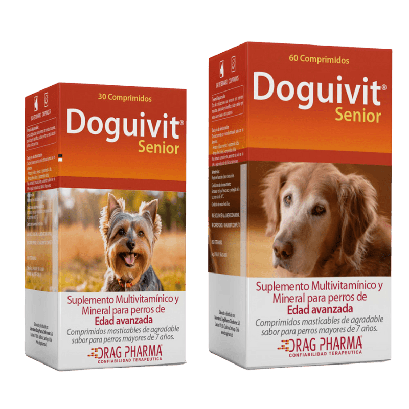 Doguivit® Senior es un suplemento multivitamínico y mineral especialmente formulado para perros de edad avanzada que presentan estados carenciales, condiciones de estrés, convalecencia o desgaste natural asociado a la vejez. Su fórmula incluye Condroitín sulfato y extracto de Schisandra, que ayudan a mantener la salud articular y la vitalidad general.