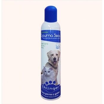 EHLINGER® ESPUMA SECA en aerosol, es un producto para la higiene y limpieza de perros y gatos de todas las edades, de fácil uso, que no requiere bañar al animal. Especialmente indicado en épocas de frío, animales convalecientes, débiles, de edad avanzada, cachorros, etc. Deja el pelo libre de suciedad y grasitud, quedando limpio, perfumado y fácil de cepillar.