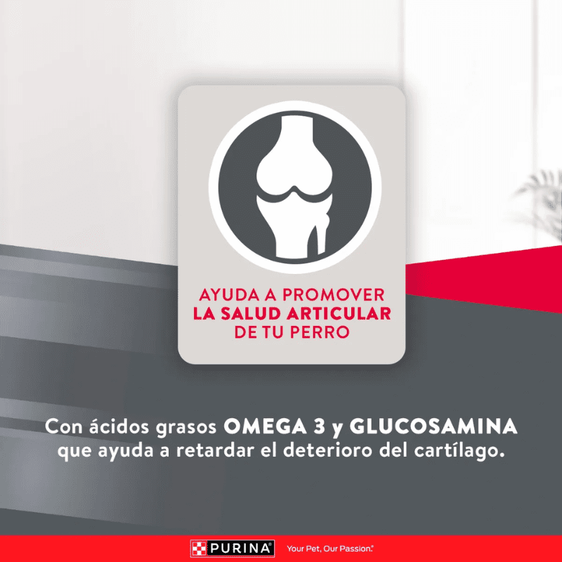 • Favorece la salud articular, ayudando a la movilidad y bienestar del perro