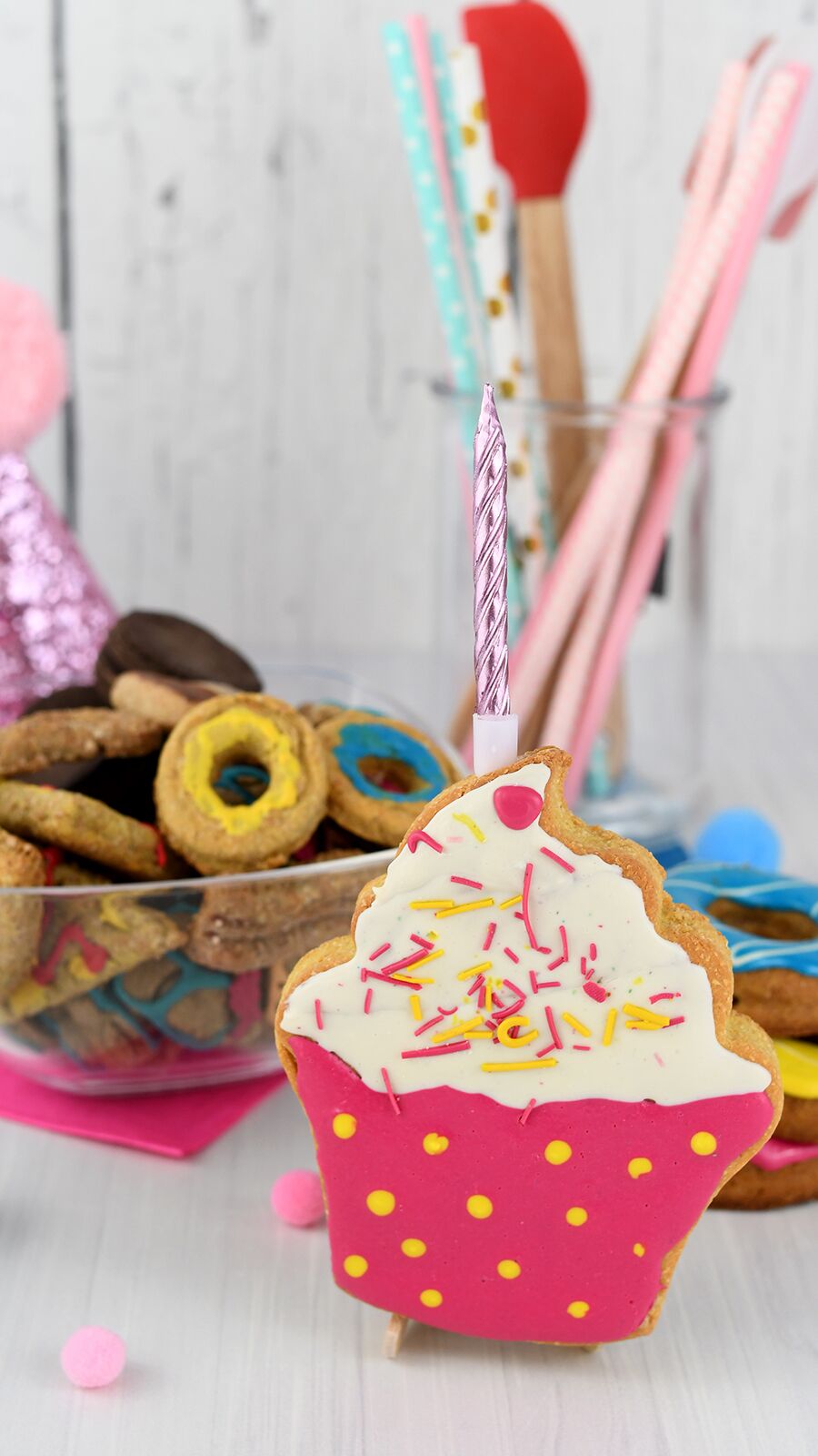Elaboración consciente, apta para mascotas, Galletas súper divertidas, forma cupcake. Especialmente elaborado para peludos intolerantes a proteínas comunes, alergias alimentarias, libre de gluten, libre de grano.