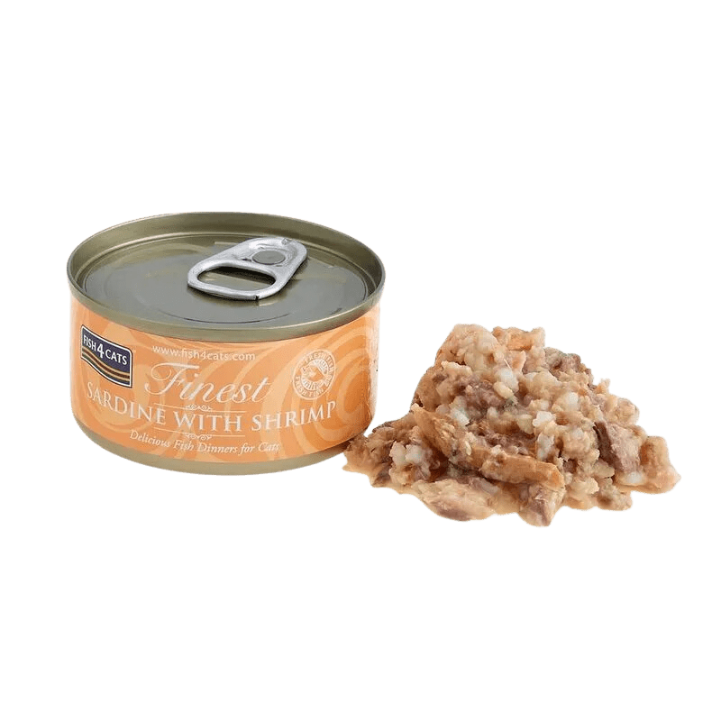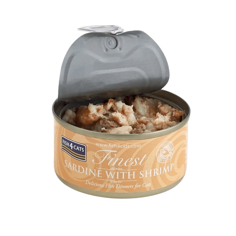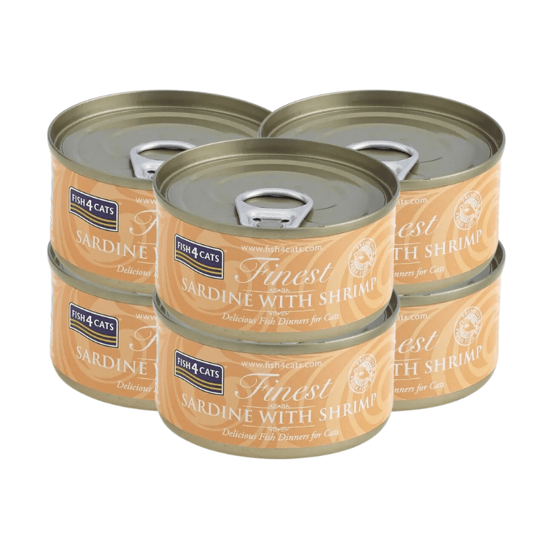 Fish 4 Cats Finest Alimento Húmedo para Gatos, Sardina con Camarones, 70 gr, 6 unidades, en lata