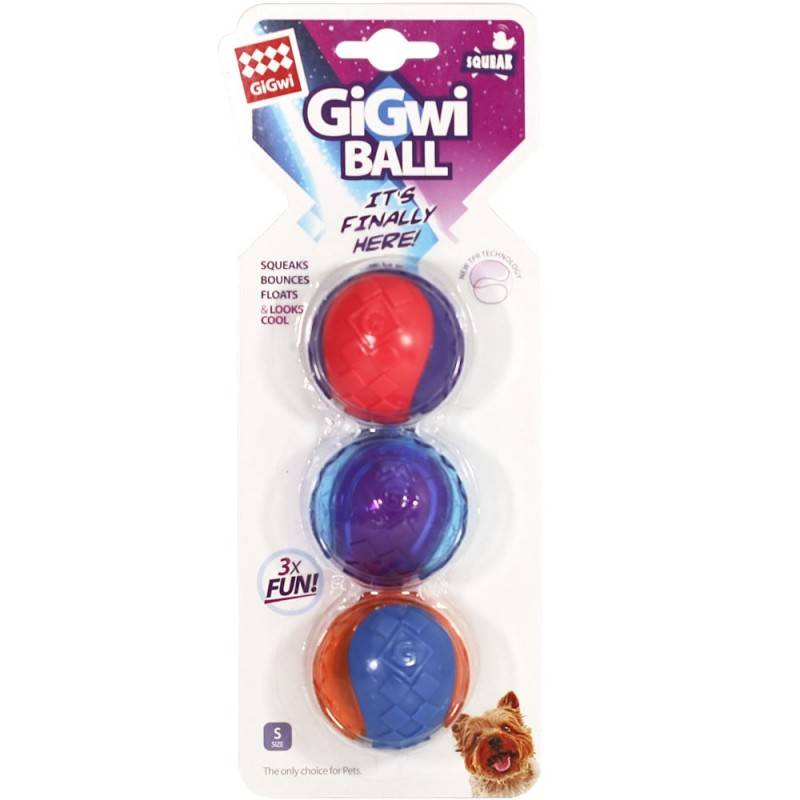 GiGwi Ball Squeaker Talla S para Perros Pequeños (6‑11 kg), Pelotas con Sonido en Pack de 3 Unidades