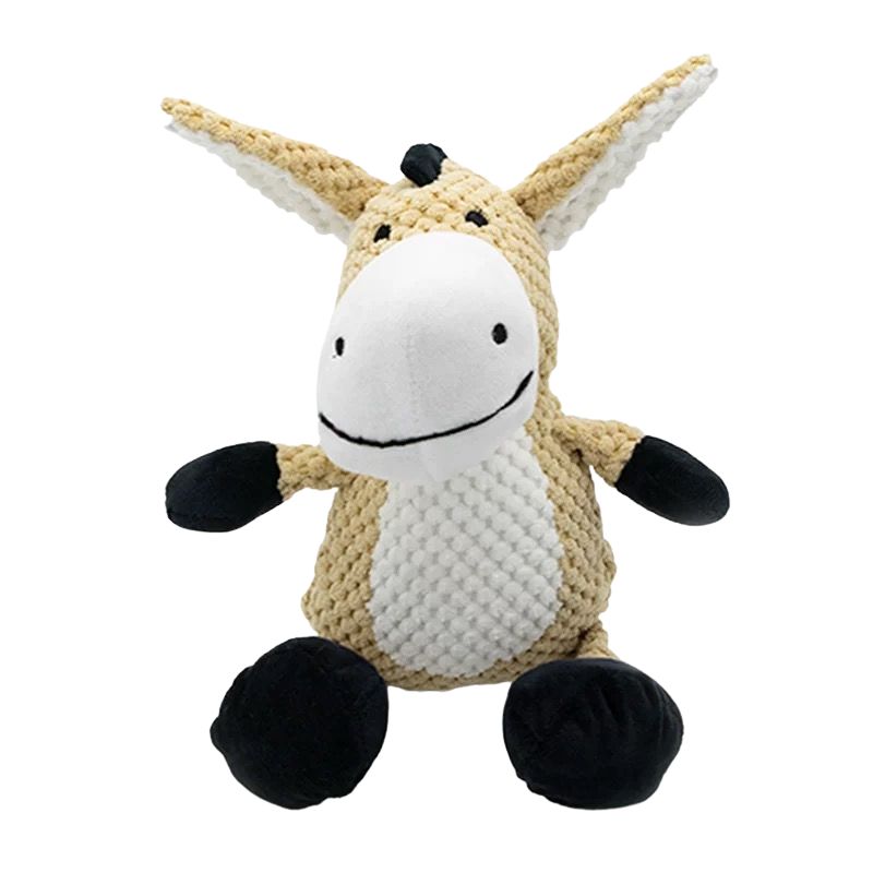 Este adorable burro de peluche es el compañero ideal para juegos suaves y momentos de calma. Con una textura tejida en relieve y detalles acolchados, está diseñado para brindar una experiencia sensorial atractiva para tu perro. Su tamaño de 32 cm lo hace perfecto para perros pequeños y medianos que buscan un juguete cómodo y seguro.
