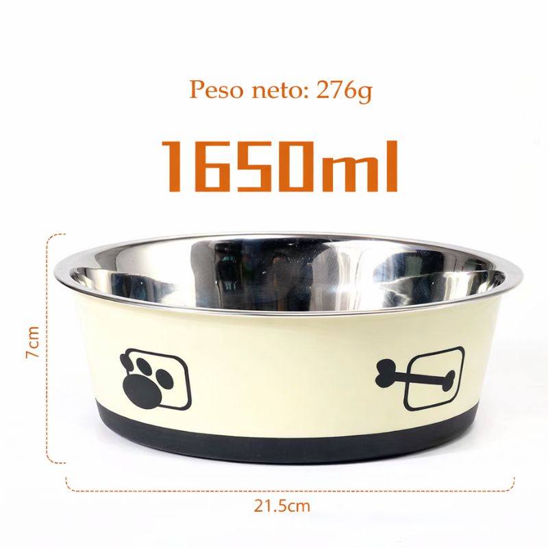PLATO COMEDERO BEBEDERO DE ACERO INOXIDABLE CON ESTAMPADO – 1650 ML