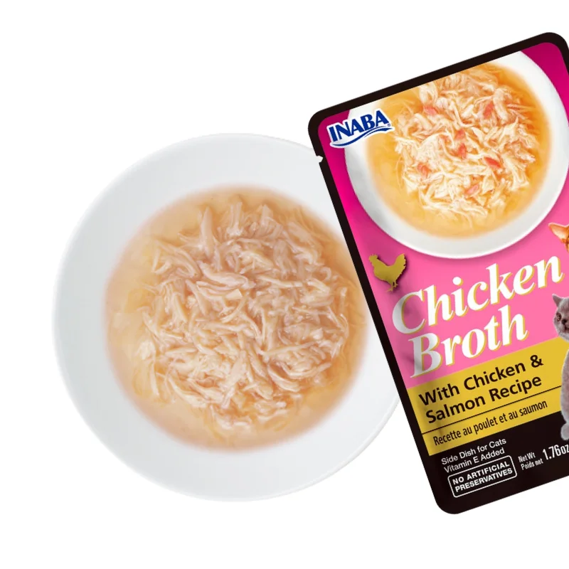 El Chicken Broth con Pollo y Salmón es una deliciosa sopa hidratante diseñada especialmente para gatos exigentes. Con un 93 % de humedad y un sabor irresistiblemente suave, combina caldo de pollo 100 % natural (de aves criadas en granjas) con tiernas lascas de pollo y salmón, creando una experiencia gourmet en cada sobre de 40 g.
