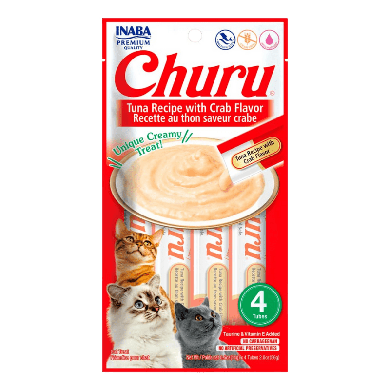 Inaba Churu Cat Atún con Cangrejo – Snack Húmedo para Gatos (4 tubos x 14 g / 56 g total)