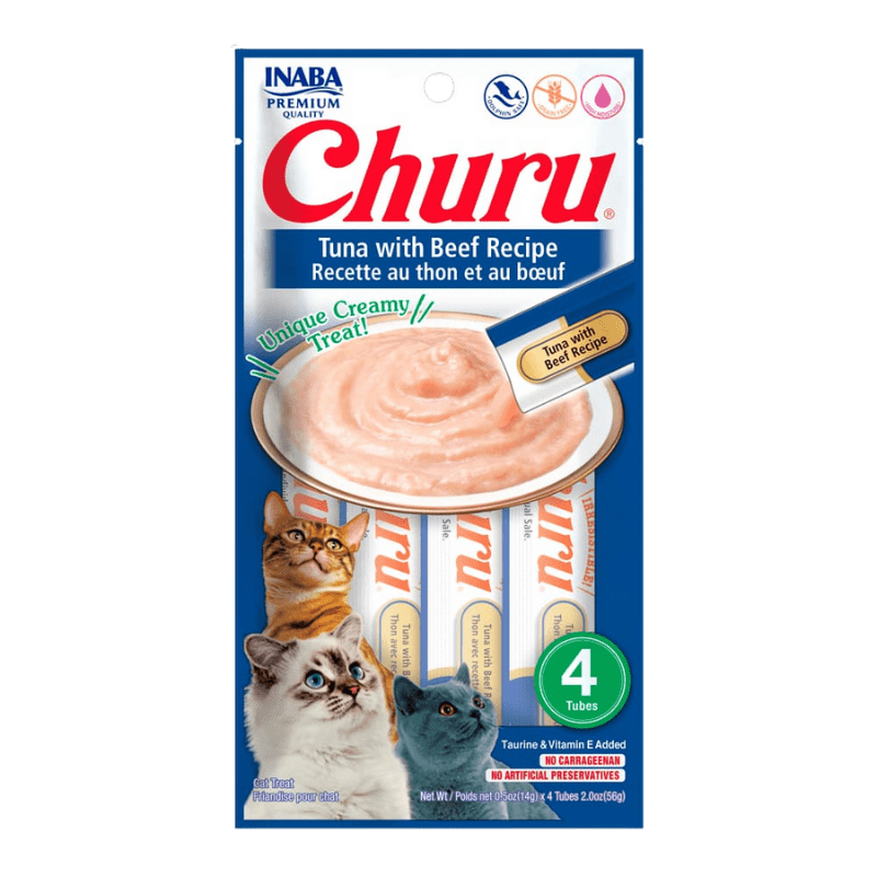 Inaba Churu Cat Atún con Carne – Snack Húmedo para Gatos (4 tubos × 14 g / 56 g total)