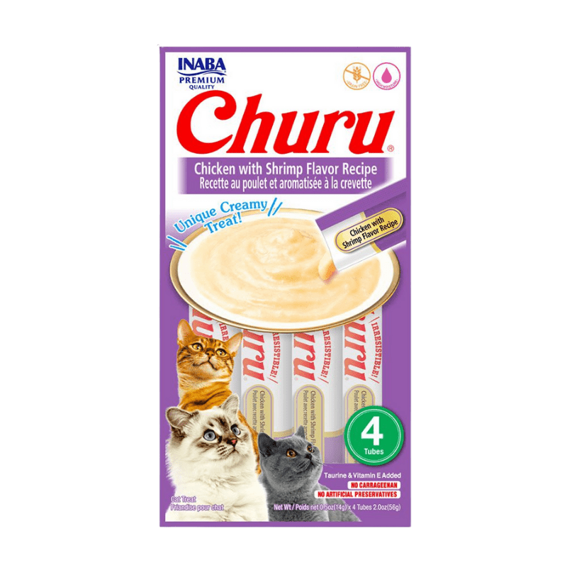 Inaba Churu Cat Pollo con Camarón – Snack Húmedo para Gatos (4 tubos × 14 g, 56 g total)