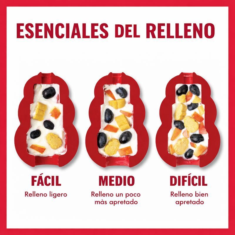 Usar seco o rellenar con alimento balanceado, premios, mantequilla de maní o pastas.