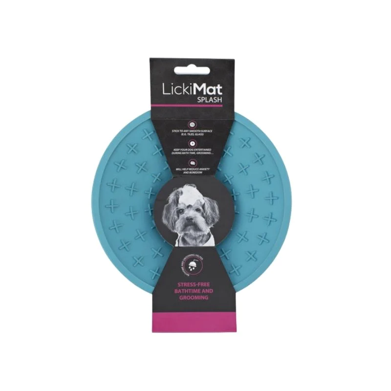 LickiMat Splash es un alimentador lento de silicona que estimula el lamido, un comportamiento que provoca la segregación de hormonas calmantes en tu perro. Hace que las comidas pequeñas duren más tiempo, lo que lo convierte en un complemento perfecto para perros que necesitan perder peso o comer más lento. Ayuda a promover una boca sana, ya que lamer estimula la producción de saliva. Su gran tapa de succión, permite que se adhiera a cualquier superficie dura como azulejos, vidrio y bañera. Gracias a su textura de cruces podrás untar comida para que tu perro la vaya sacando con cada lametón. Solo tienes que extender el alimento en la superficie superior hasta rellenar todos los huecos por igual. Colores: Naranjo, Púrpura, Turquesa, Verde. Diámetro: 20 cm. Beneficios: