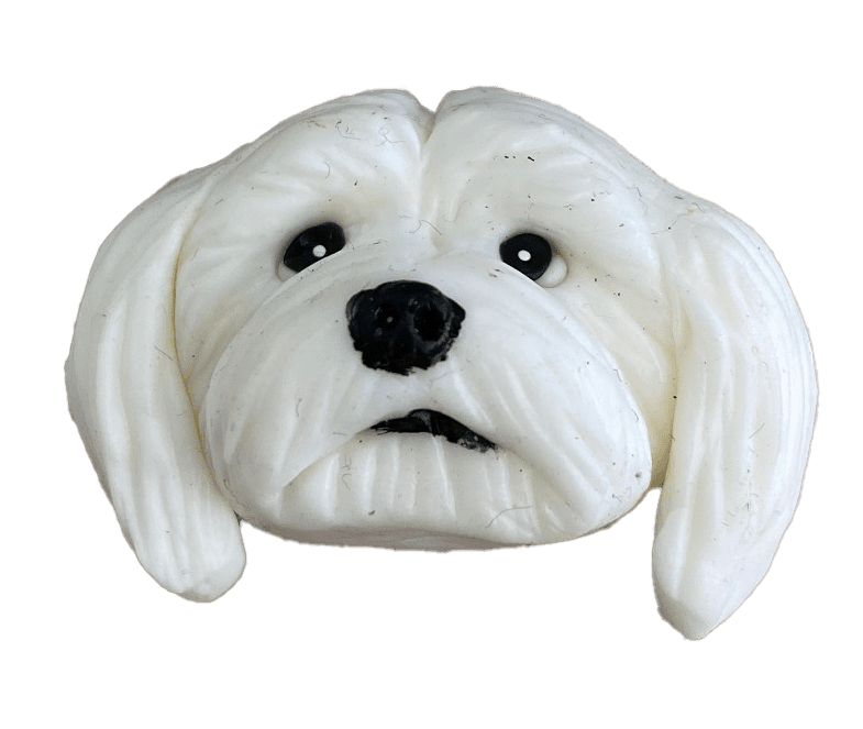 Llavero con forma de perro raza Maltés. Dimensiones: 3 cm de diámetro aprox.