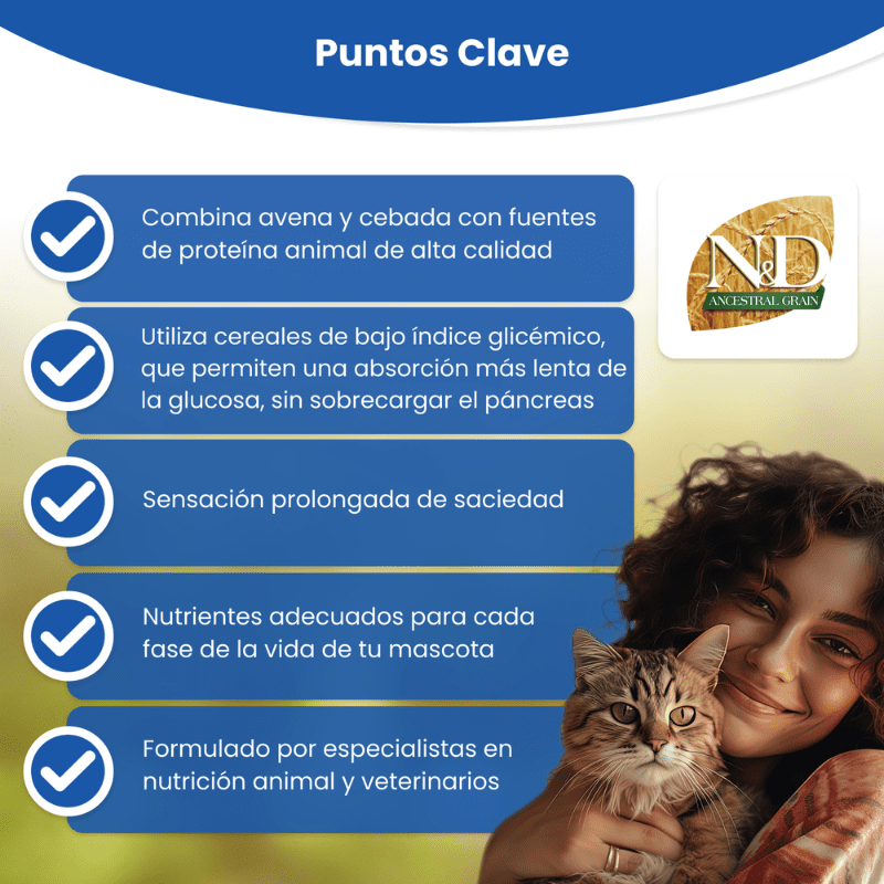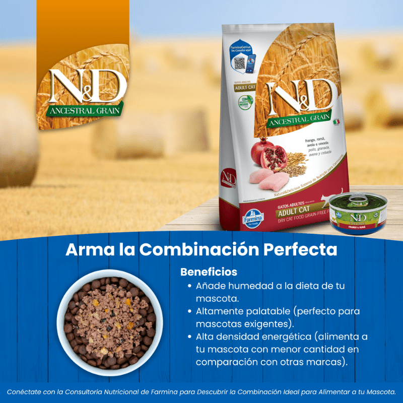 | Producto | N&D Ancestral Grain Adult Cat Pollo y Granada |