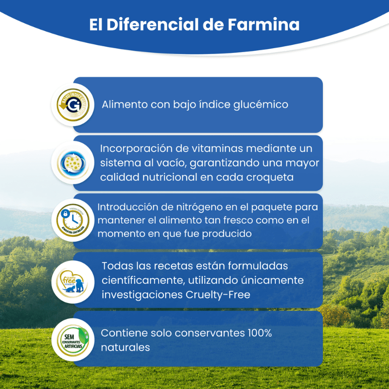 | Características | Sin maíz, sin trigo, sin soya, bajo índice glucémico |