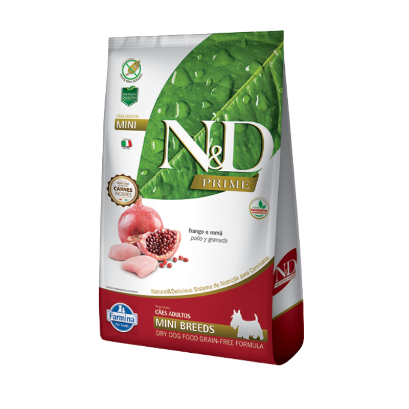 N&D Prime Adult Mini Breed, Alimento Seco para Perros Adultos, Raza Pequeña, Pollo y Granada, bolsa de 10.1 kg