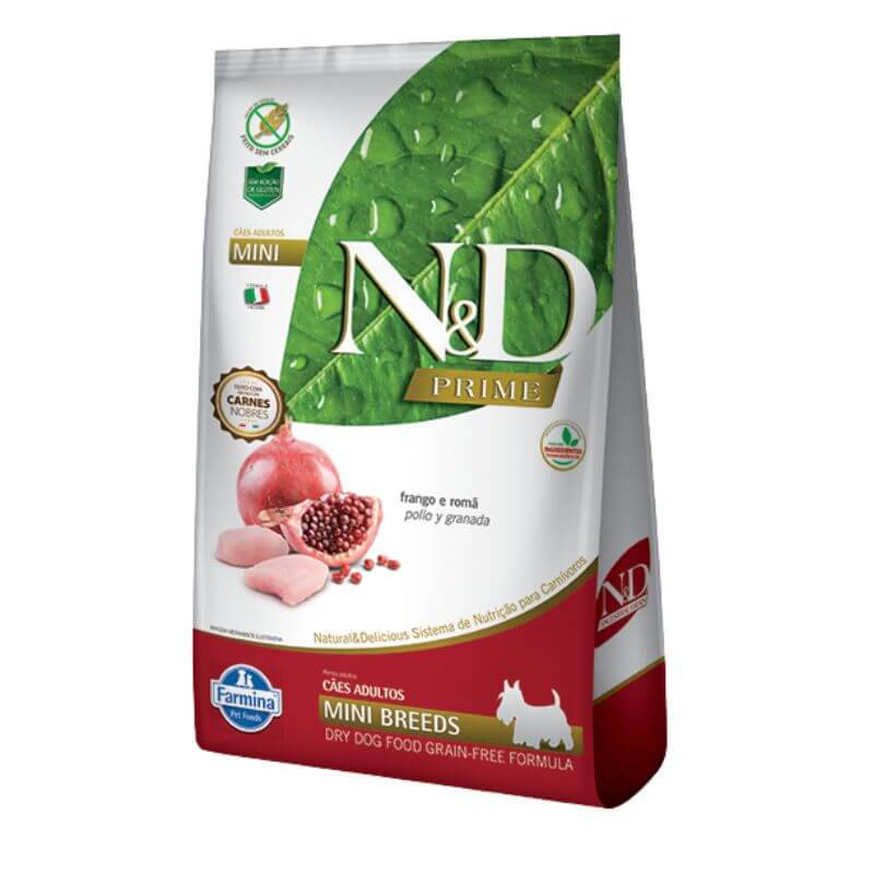 N&D Prime Adult Mini Breed, Alimento Seco para Perros Adultos, Raza Pequeña, Pollo y Granada, bolsa de 2.5 kg