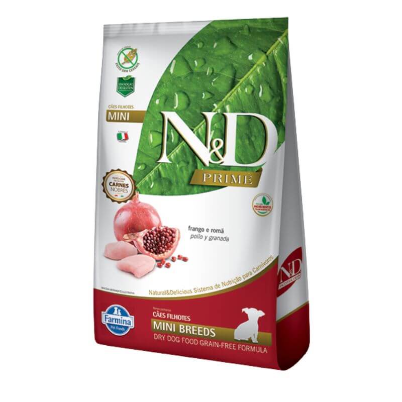 N&D Prime Puppy Mini Breeds, Alimento Seco para Perros Cachorros, Raza Pequeña, Pollo y Granada, bolsa de 2.5 kg