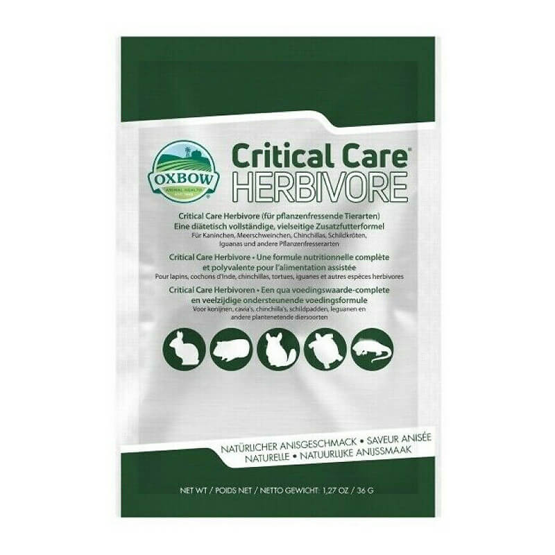 Alimento completo de recuperación para herbívoros convalecientes (incluidos reptiles). OXBOW Critical Care es un alimento de recuperación de alta calidad que puede ser administrado a animales herbívoros que no quieren o no pueden comer su dieta normal, debido a enfermedad, cirugía reciente o por un estado nutricional deficiente. Este producto especialmente formulado contiene todos los nutrientes esenciales de una dieta completa, as como alto contenido de fibra de heno Timothy para garantizar la correcta fisióloga del intestino y una adecuada digestión.