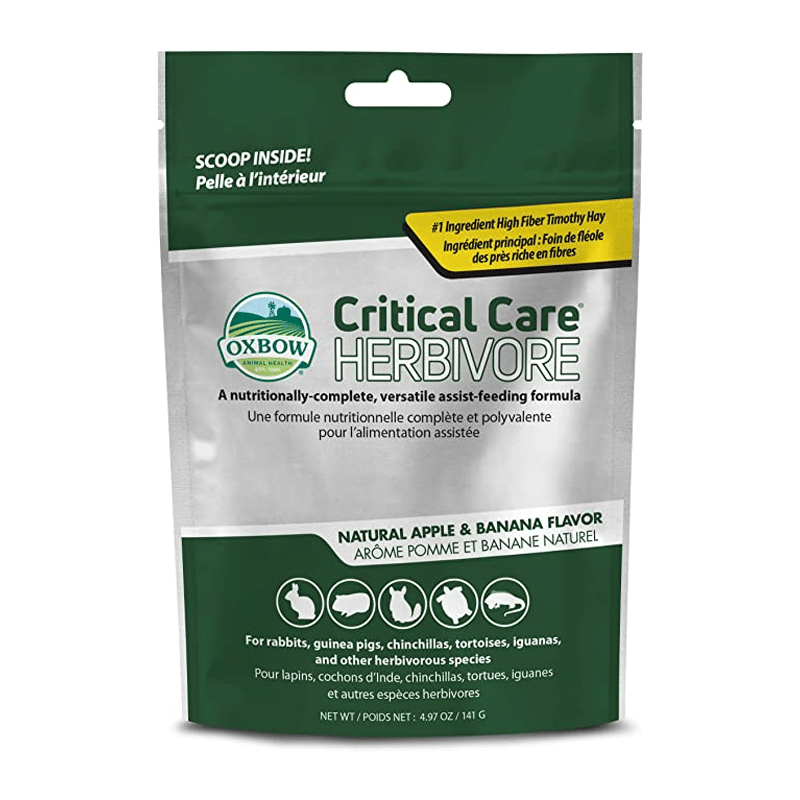 Oxbow Critical Care Herbivore, Suplemento Nutricional para Animales Pequeños, Manzana y Banana, bolsa de 141 gr