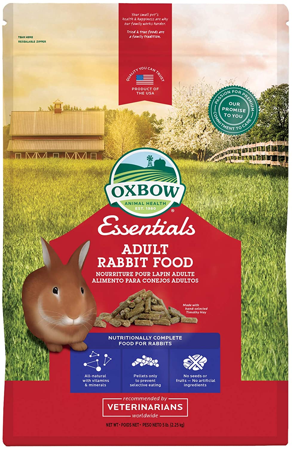 Oxbow Essentials, Adult Rabbit Food, Alimento para Conejos de Pasto Timothy, bolsa de 2.2 kg
