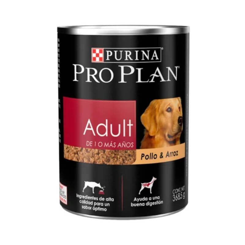 Purina Pro Plan Alimento Húmedo para Perros, Adulto, Pollo y Arroz, lata de 368 gr