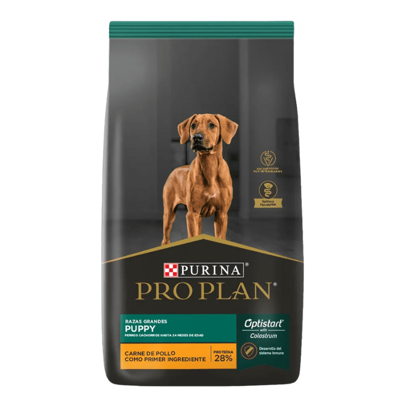 Purina Pro Plan Puppy Razas Grandes es un alimento formulado especialmente para satisfacer las necesidades nutricionales de cachorros de razas grandes y gigantes (desde el destete hasta los 24 meses). Su exclusiva tecnología OptiStart® fortalece las defensas naturales y promueve un crecimiento y desarrollo saludables durante la primera etapa de vida.Características y Beneficios del Producto