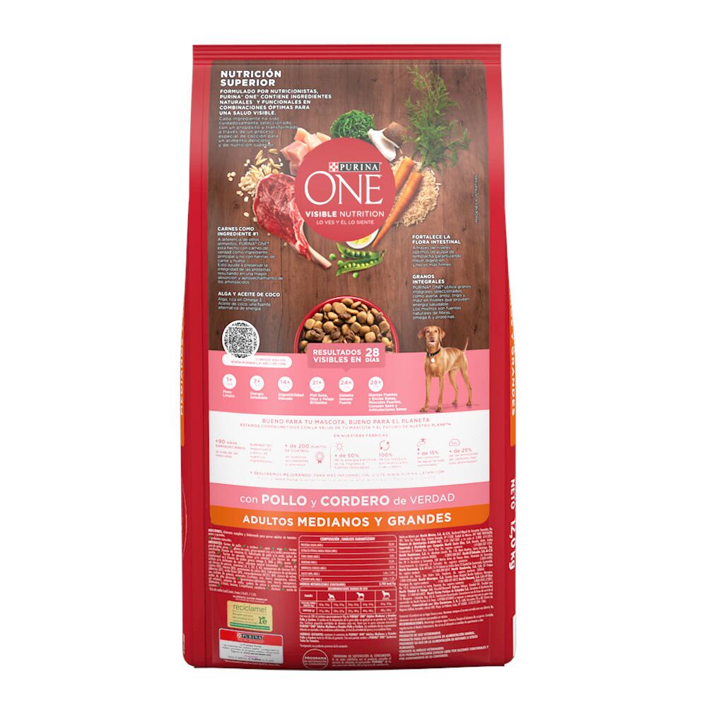 Purina ONE Alimento Seco para Perros, Adulto, Raza Mediana/Grande, Pollo y Cordero, bolsa de 6-12 kg