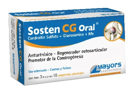 SOSTEN CG Oral es un tratamiento especializado para la prevención y manejo de la artrosis en perros y gatos. Formulado con condroitín sulfato, glucosamina y sulfato de manganeso, este suplemento contribuye a la protección, regeneración y mantenimiento de las estructuras del cartílago, reduciendo la inflamación y el dolor articular.Indicaciones