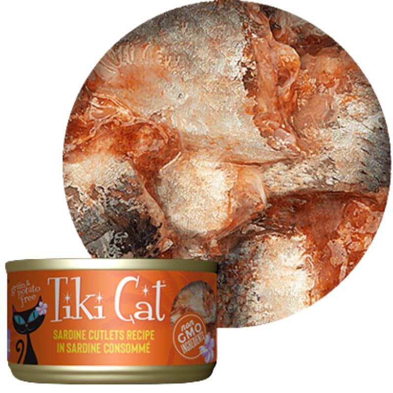 Tiki Cat Tahitian Grill Sardine Cutlets es un alimento húmedo complementario que ofrece sardinas silvestres fileteadas en un caldo delicioso. Rico en proteína animal, ácidos grasos omega y nutrientes esenciales, es una opción saludable y llena de sabor para consentir a tu gato.