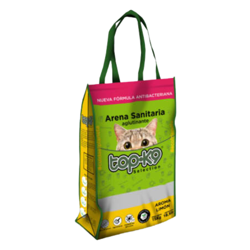 Top-K9 Carbón Activo Limón, Arena Sanitaria Aglutinante para Gatos, Bolsa Reutilizable de 15 kg