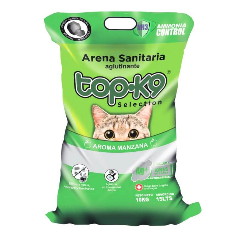 Top-K9 Iones de Plata Manzana, Arena Sanitaria Aglutinante para Gatos, Bolsa de 10 kg