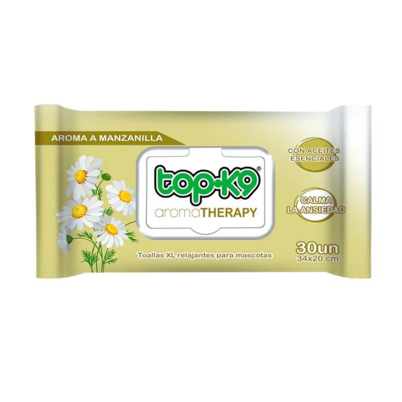 TOP-K9 TOALLITAS XL AROMATHERAPY – MANZANILLA (30 UNIDADES)