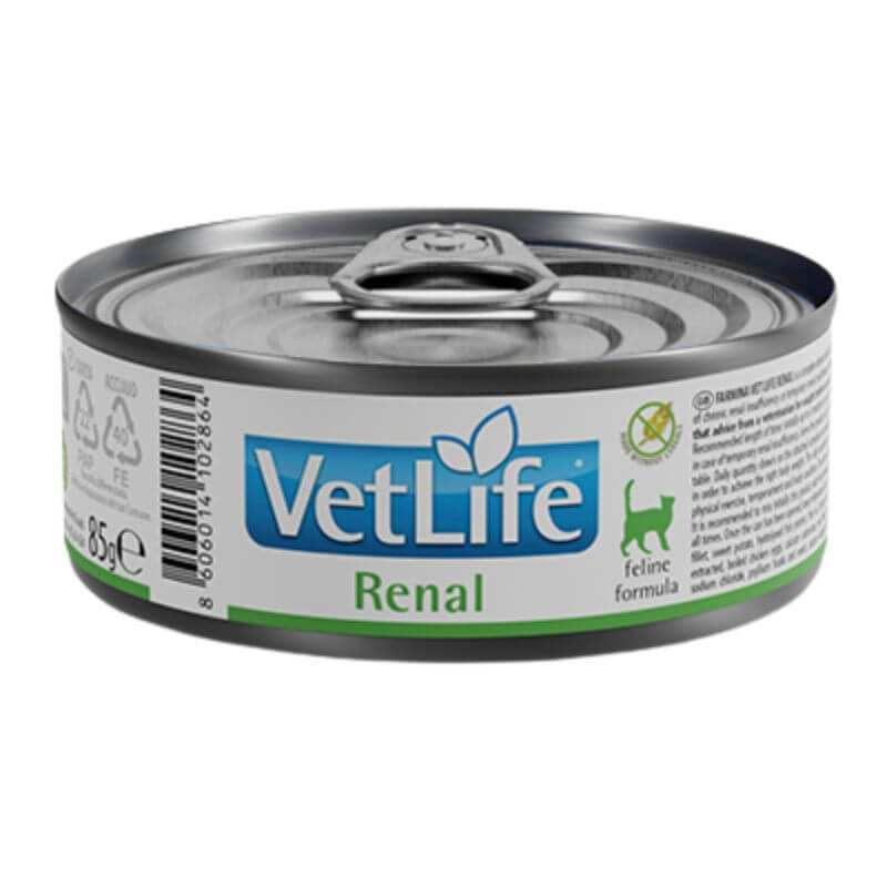 VetLife Renal, Alimento Húmedo para Gatos Adultos, Insuficiencia Renal Crónica o Temporal , lata de 85 gr