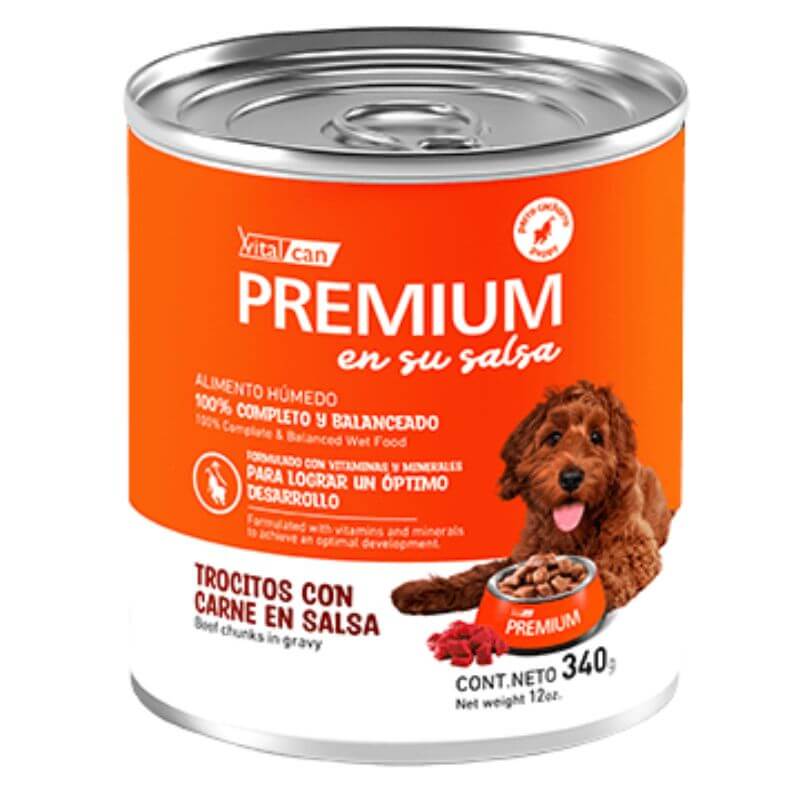 VITAL CAN PREMIUM – TROCITOS CON CARNE EN SALSA (Lata 340 g)