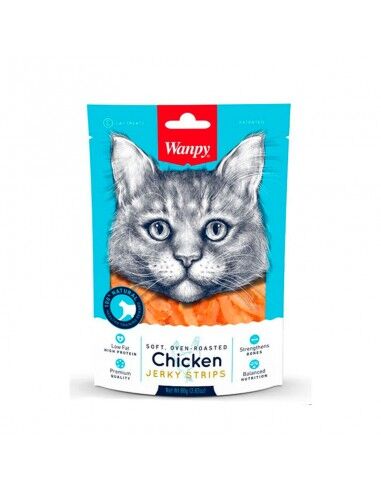 Wanpy Cat, Soft Chicken Jerky Strips, Snack para Gatos, Tiritas de Charqui de Pollo, bolsa de 80 gr