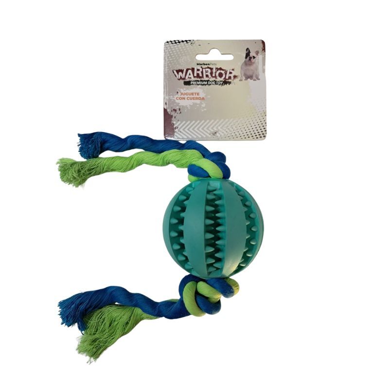 El Warrior Balón Dentado con Cuerda es un juguete diseñado para brindar diversión y salud a tu perro. Fabricado en caucho natural no tóxico y resistente a la mordida, este accesorio permite largas sesiones de juego mientras ayuda a mantener los dientes y encías limpios y saludables.