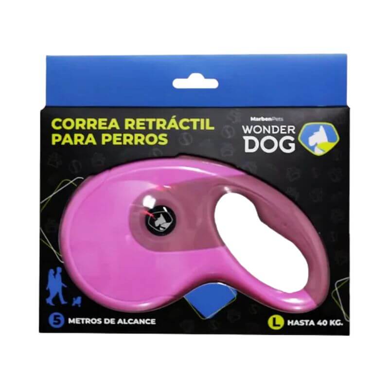 Wonder Dog Correa Retráctil para Perros – 5 Metros, Hasta 40 kg (L), Color Rosado