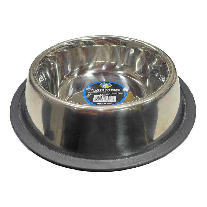 Wonder Dog Plato de Acero Inoxidable para Mascotas, Antideslizante, Capacidad 950 ml